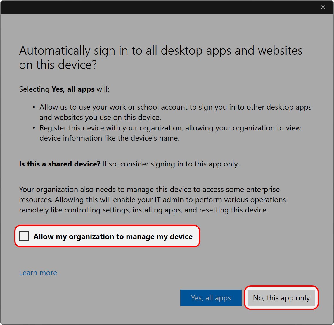 Lehnen Sie dies ab, indem Sie die im Screenshot gezeigten Einstellungen vornehmen und den Zugriff über einen Klick auf "No, this app only" exklusiv auf die App selbst beschränken.